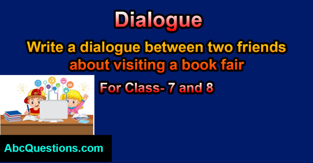 Write a dialogue between two friends about visiting a book fair for class 7 and 8